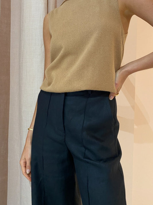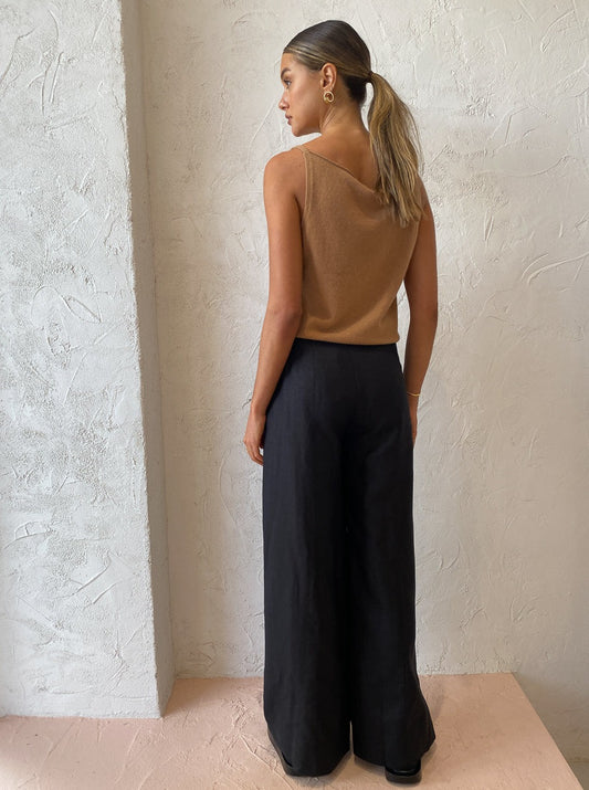 Soft to touch, these pants are expertly tailored in a luxurious heavy weight linen. Designed to sit comfortably high on the waist with belt loops and buckle closure, these pants fall into a flattering wide leg silhouette.