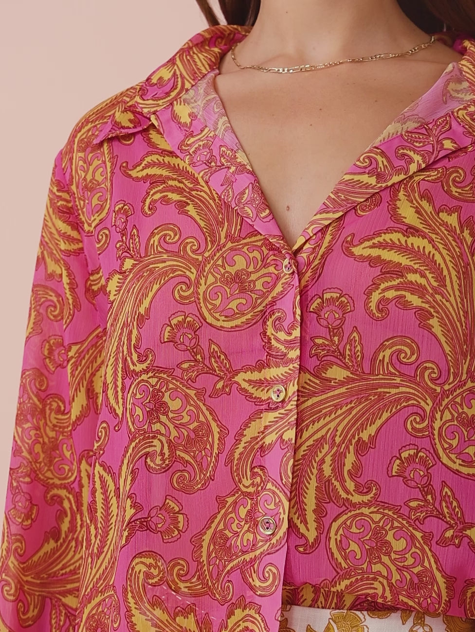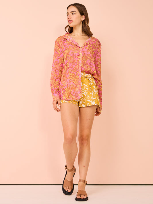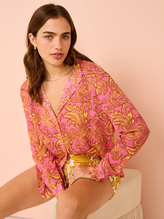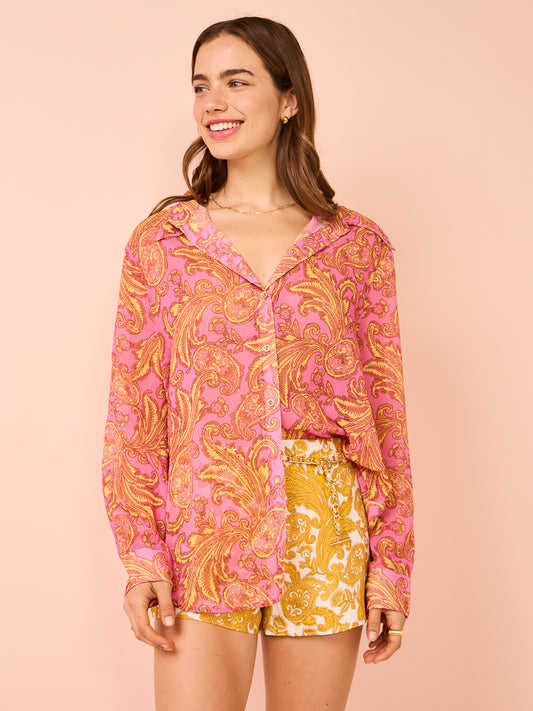 Bring pink prints into your Coco collection with the Hansen & Gretel Apollo Shirt in Pink Splice.