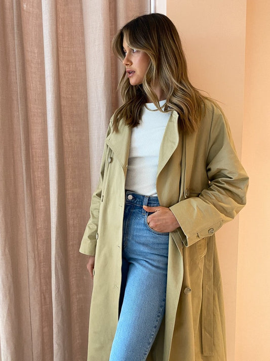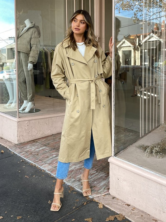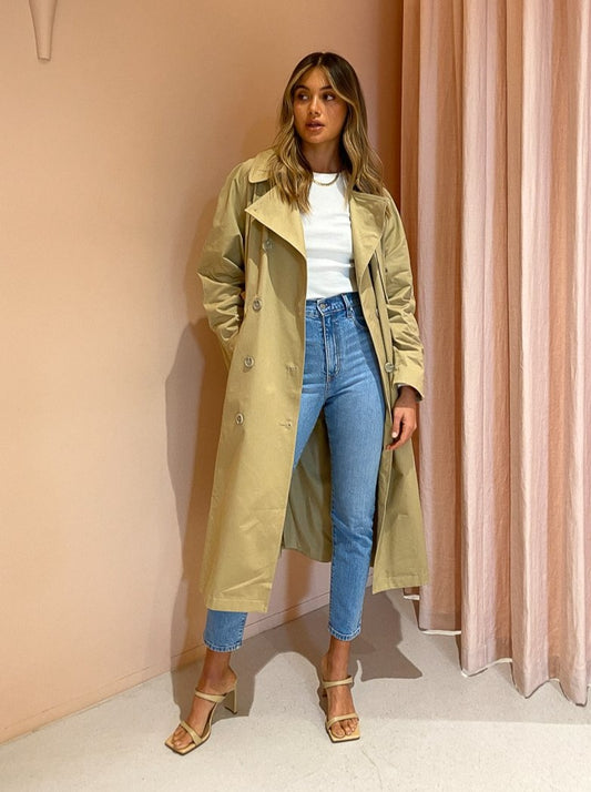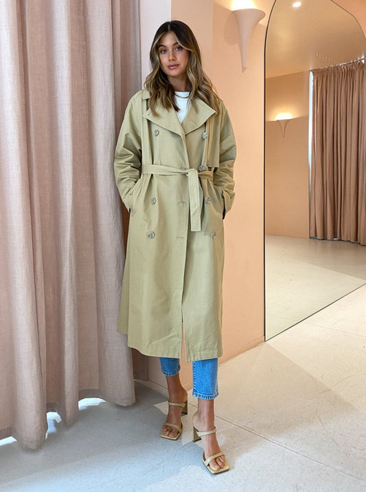 The Dempsey Trench Coat in Safari from Hansen & Gretel is the classic and versatile piece every girl needs in their Coco closet.