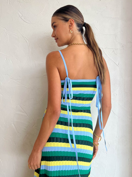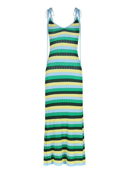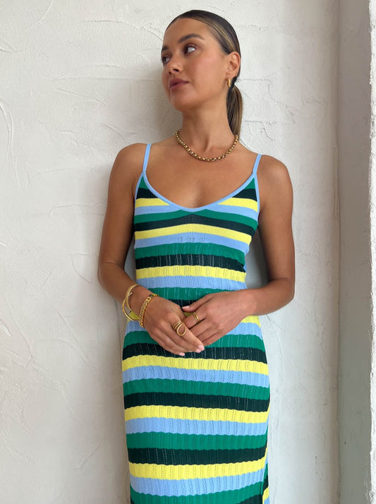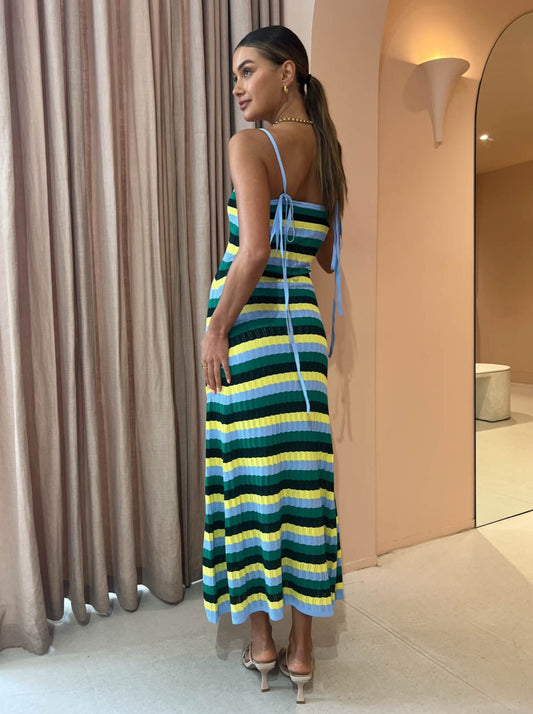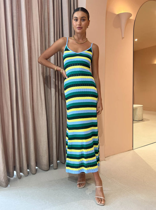 Crafted in a knitted fabrication, this maxi dress features a slightly scooped V-neckline, thin adjustable straps and a square back before falling into a flattering soft hemline.
