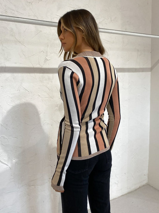 Hansen & Gretel are focusing on texture and shape in the Jerry Polo Top in Stripe Jacquard.