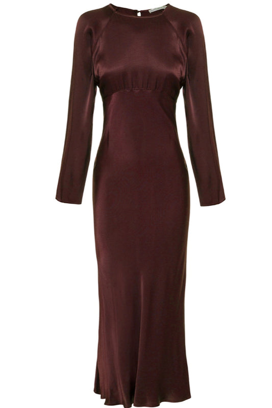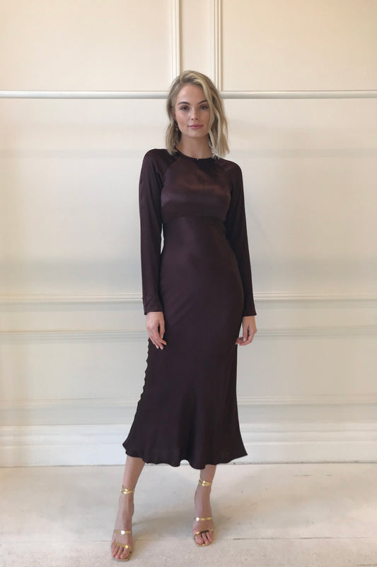 The Hansen and Gretel Maria Dress is a bias cut style dress, with a raglan sleeve and paneling under the bust for added shape. A basic style perfect for everyday and special occasions. With a full length sleeve featuring self covered buttons and rouleau loops on the cuff. Opening via a keyhole and zipper at the back of the dress.