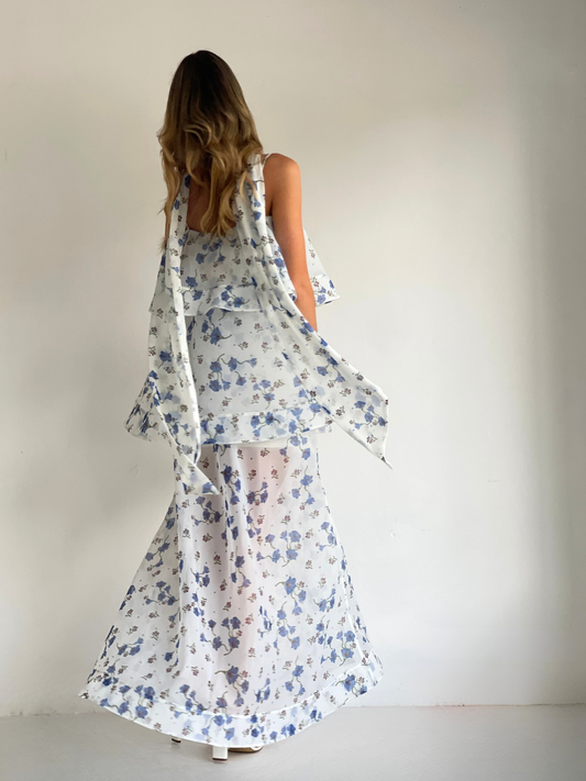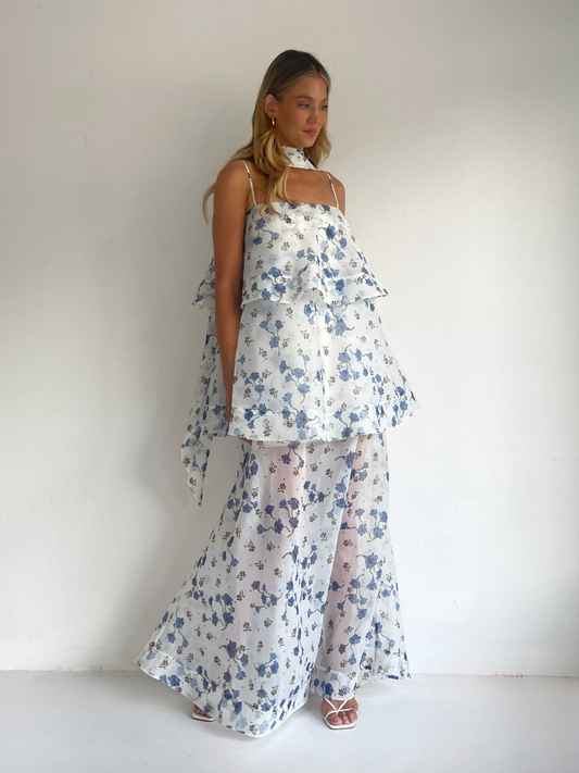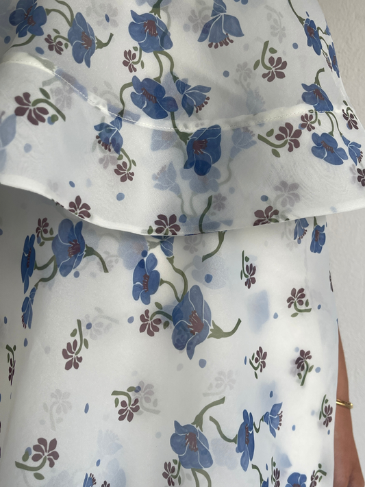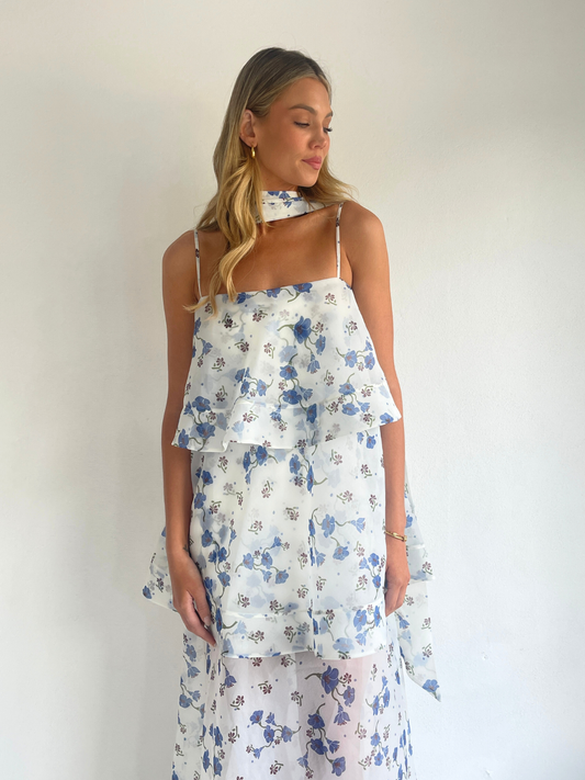 The Issy Ameile Dress in Blue Belle is made from a soft organza and features 3 tired layers with a wide hem.