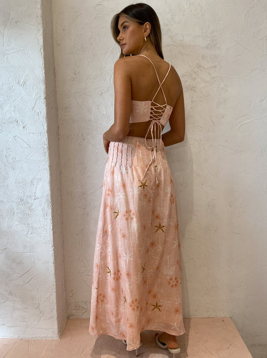 Turning heads with its waist cut outs and unexpected back cut out with intricate lace up detail at birthday celebrations, long ladies lunches and summer Coco occasions.