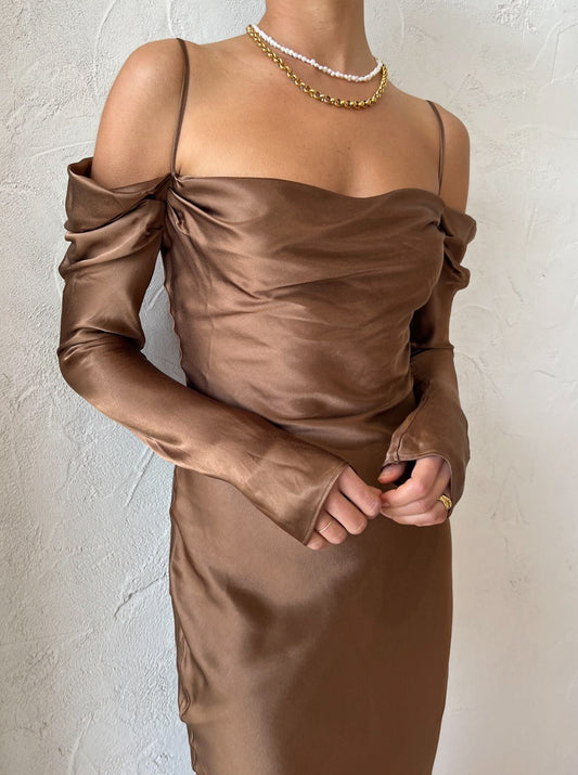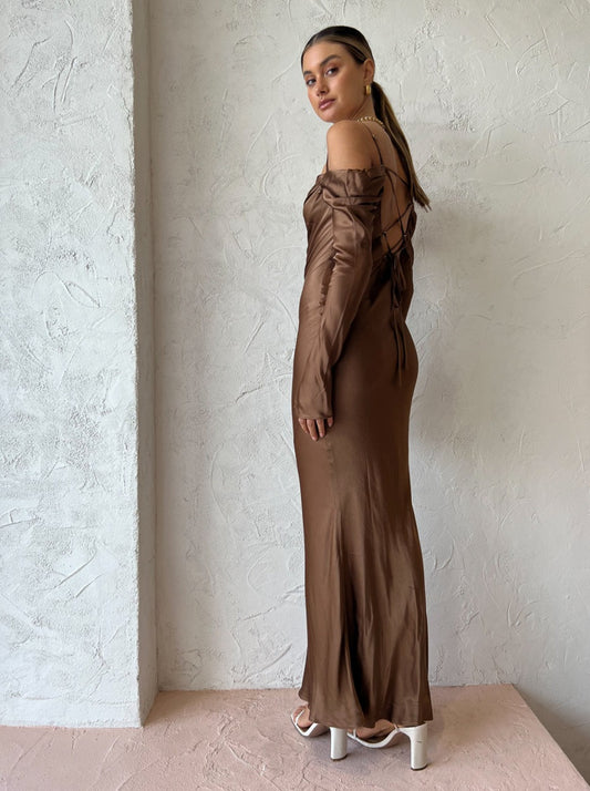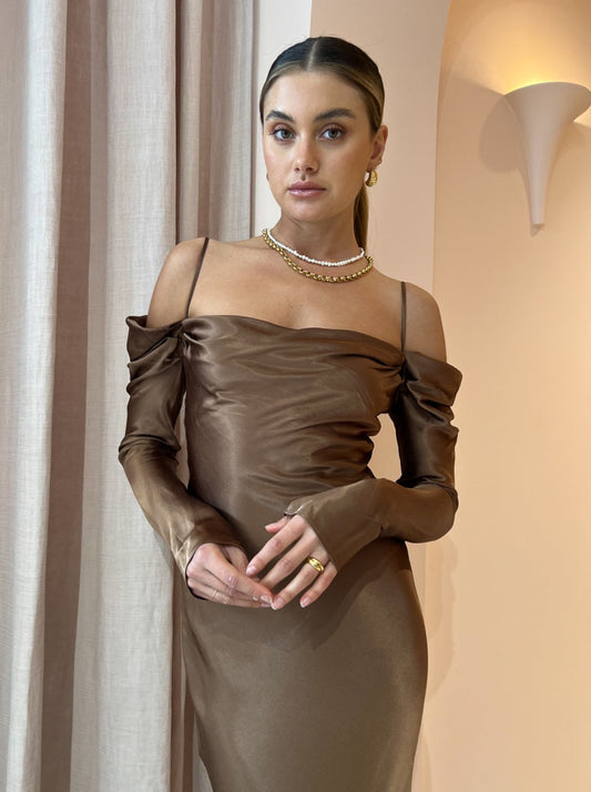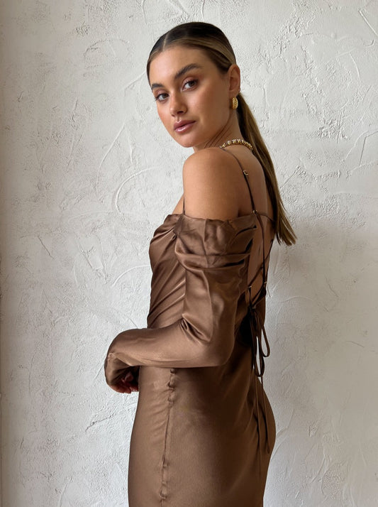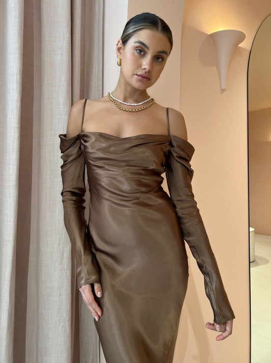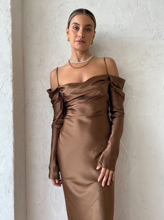Exclusive to Coco, Issy's Sereia Dress in Copper is an indulgent springtime silhouette for your special occasion wardrobe.