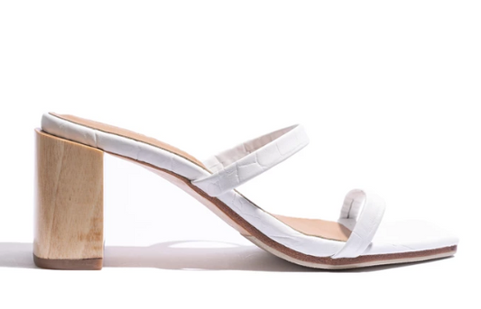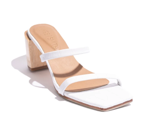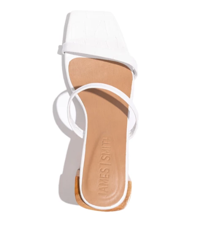 The James Smith Sinenuse Strap sandal in White Croc is a Coco HQ favourite. This heel is the perfect height to take you from desk to date and thanks to the chunky wooden heel is not only stylish but comfy too!