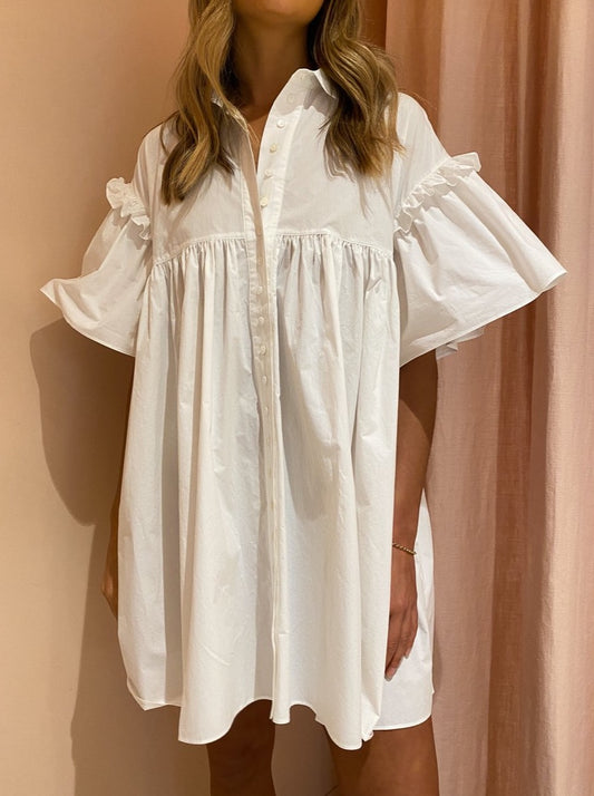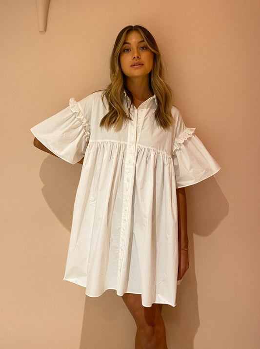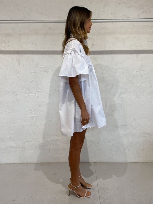 The Joslin Ashleigh Cotton Smock Dress in Optical White is the coveted crisp classic silhouette for the Coco closet.