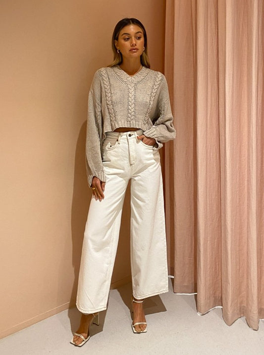 Coco Styling Tip: Coco girls love to style the Bethany with the SIR. Wide Leg Jean in Ivory and the Alias Mae Camelia Heel in Bone for winter dinner dates and long weekend lunches.