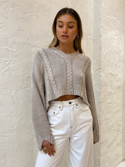 Elevate your on repeat winter knitwear with the Joslin Bethany Linen Cotton Knit in Flax.