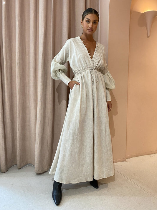 Joslin Melinda 2.0 Linen Ramie Maxi Dress in Flax