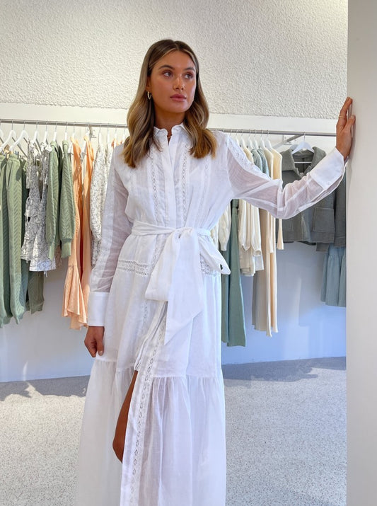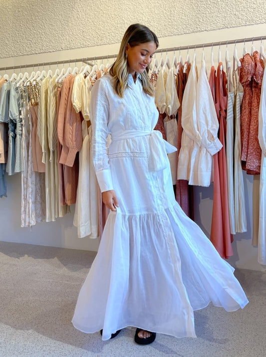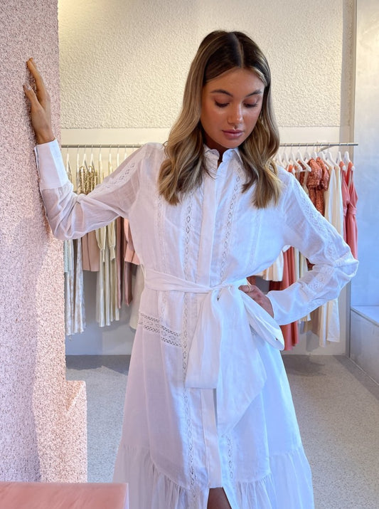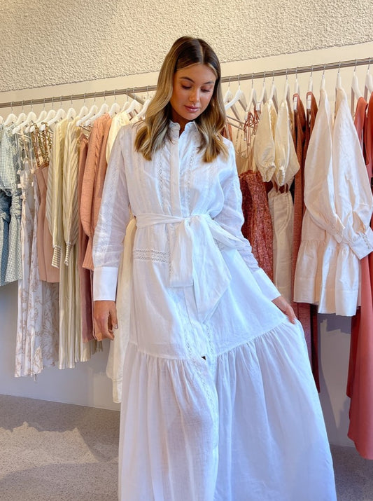 Delicate to touch, the Melissa is crafted from a sustainable linen in a crisp white colourway. Designed for longevity in your Coco closet, the Melissa is a wear on repeat shirt style maxi dress.
