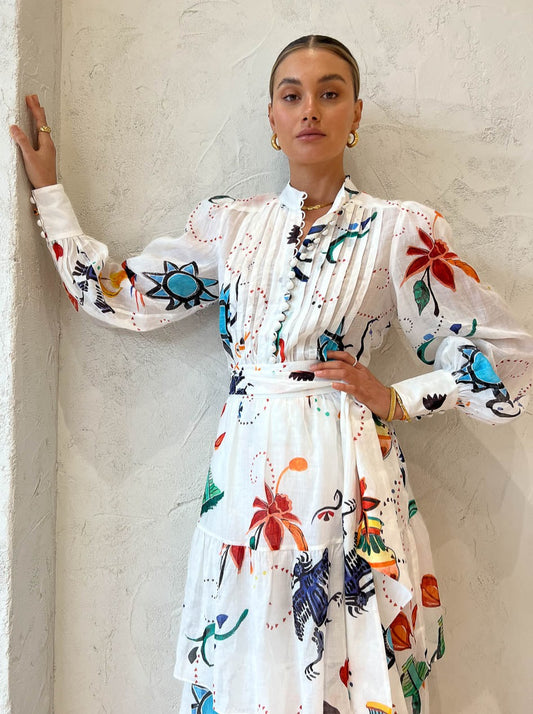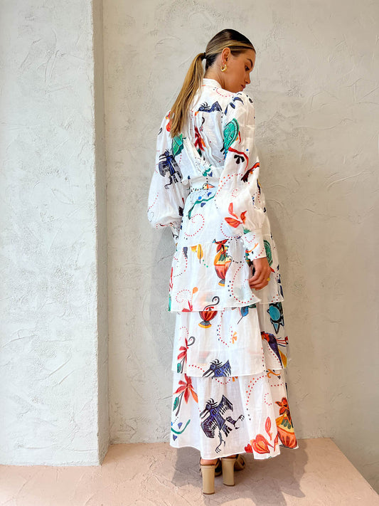 Cherished for it's awe inspiring whimsical print, style this skirt with the matching blouse for birthday celebrations, long lunches and wedding celebrations.