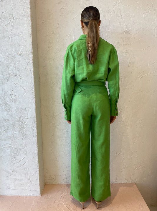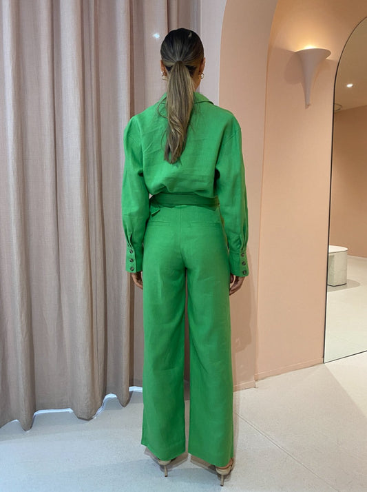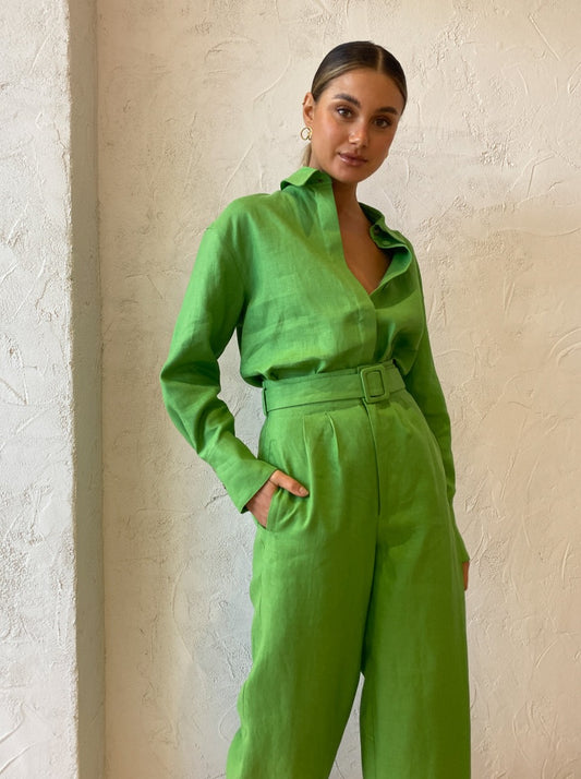 Refresh your set wardrobe with the Devina Relaxed Pant in Moss from Kate Ford.