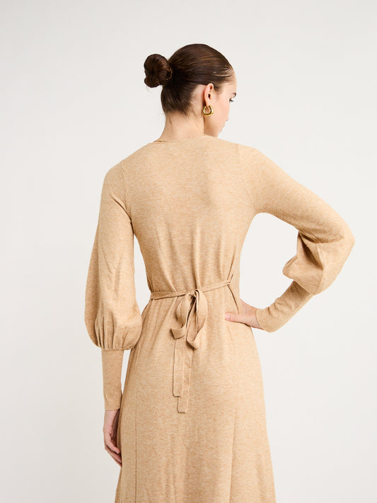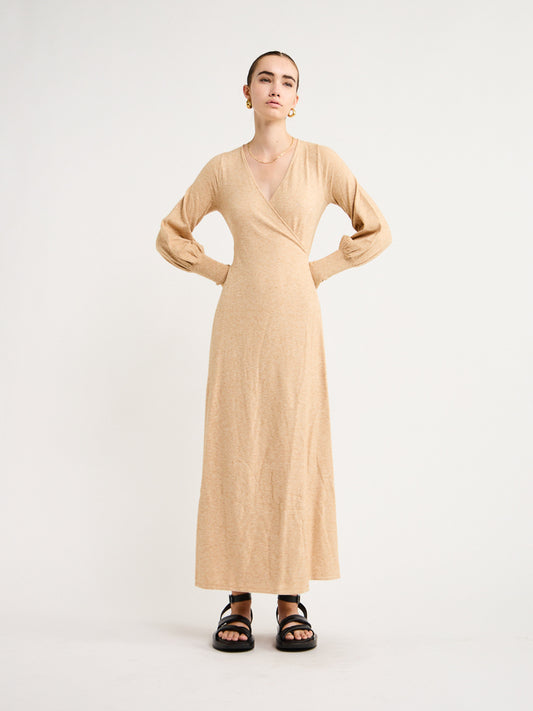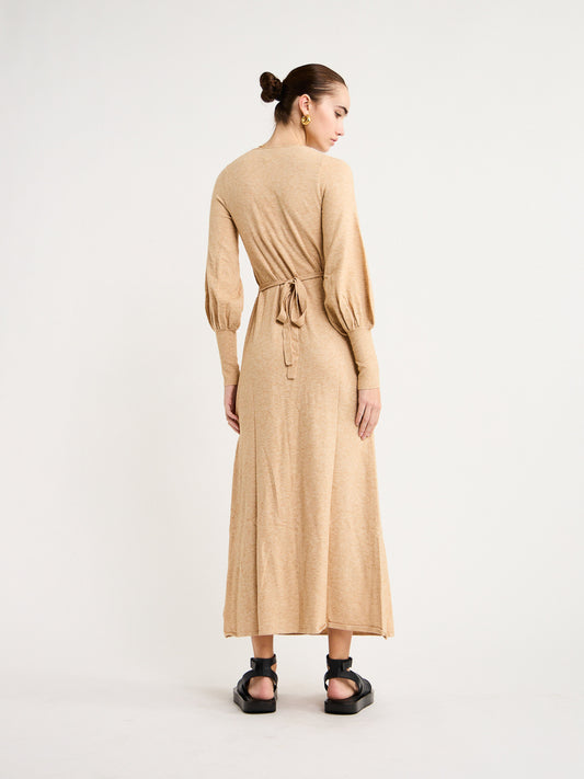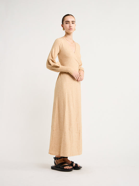 Kinney introduces us to elevated sophistication with the Marlow Wrap Dress in Oat Marle.