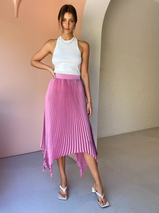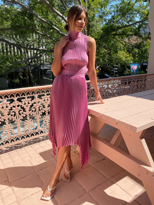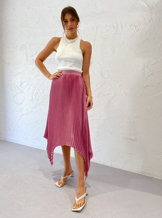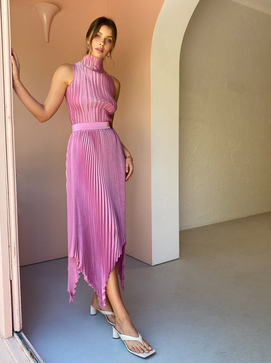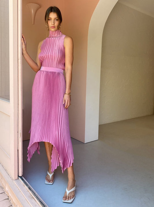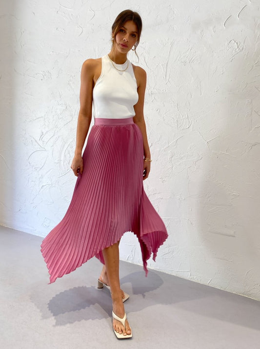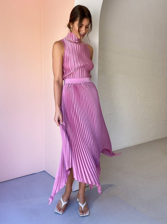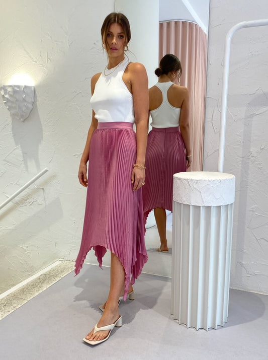 Featuring an asymmetrical hemline and statement pleating, we love how versatile this piece is.