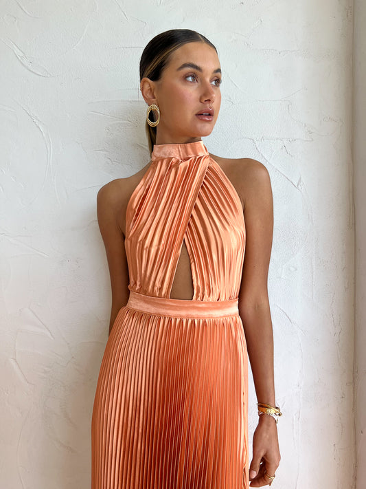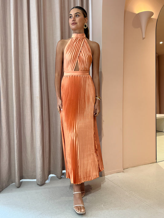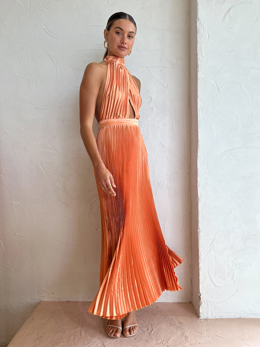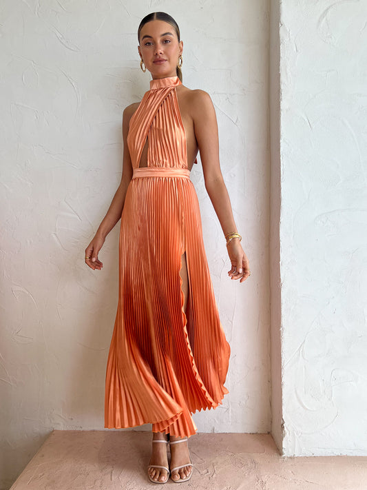 For all your sun-drenched soirees, look no further than the Renaissance Split Gown in Sunset by LIDEE WOMAN.