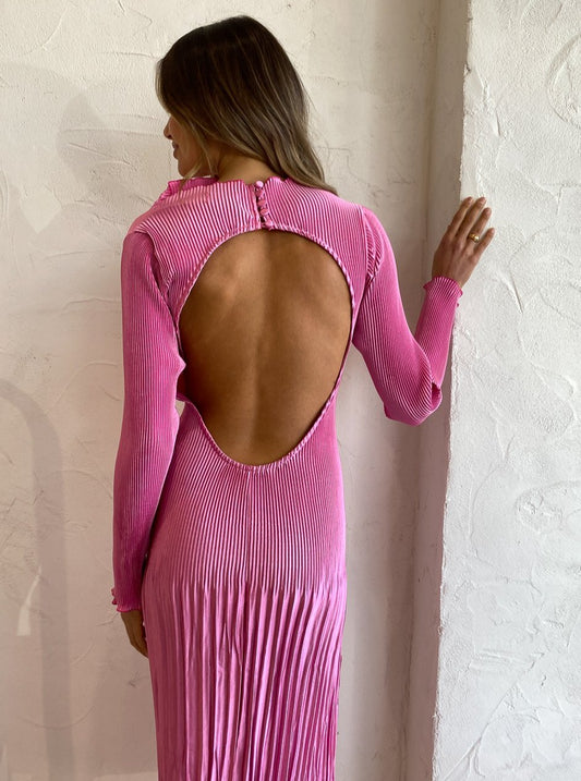 Standout in the Soiree Long Sleeve Backless Gown in Hot Pink by L'IDEE.