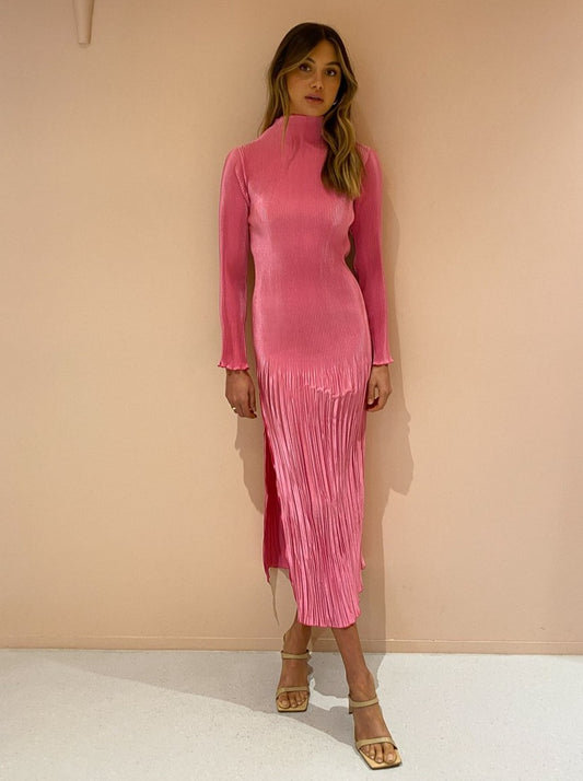 This delicate silhouette accentuates the female form in the most beautiful way, featuring signature L'IDEE ribbed pleating through the arms and torso which softens into a relaxed whimsical pleat and finishing with a gently fluted hem.