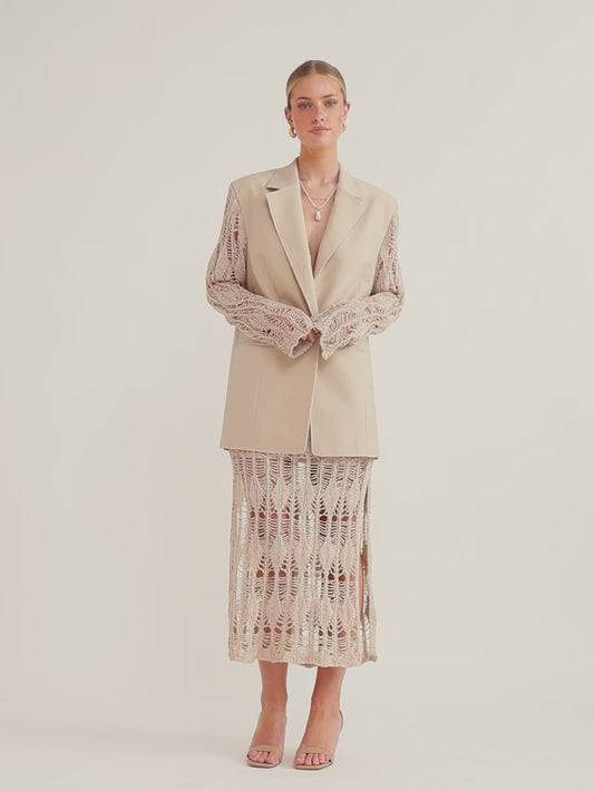 Experience the effortless luxury of the Lyra Blazer in Bone from Bec + Bridge.
