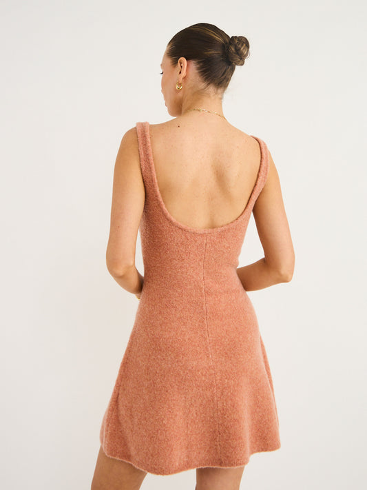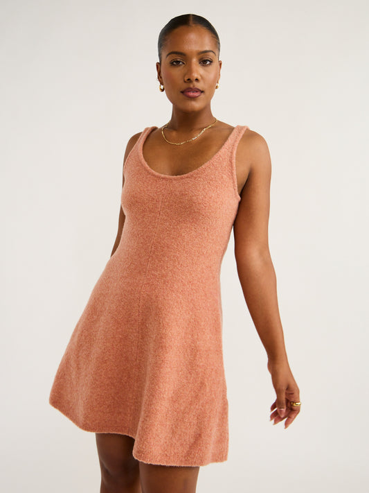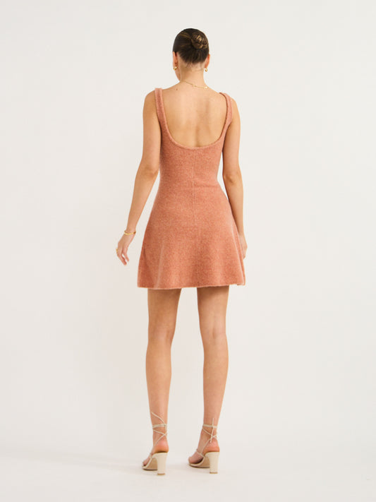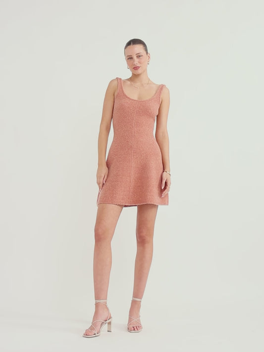 Indulge in soft femininity with the Maggie Boucle Mini Dress in Salmon from Clea.
