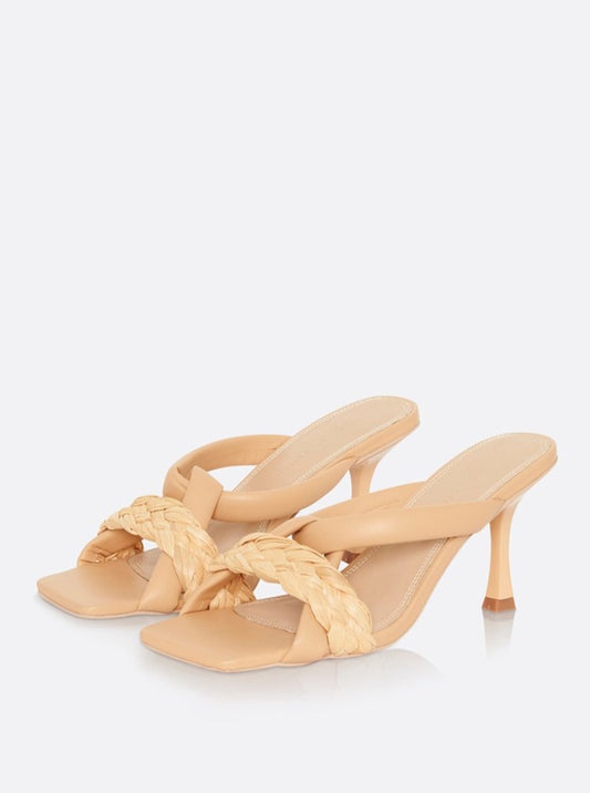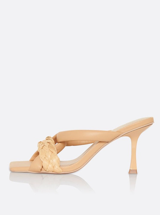 Crafted from a Microfibre leather and Yafit Raffia, the Above & Beyond Mule are a slip on open square toe style, featuring an intertwined straps and a contrast tonal raffia detailing.