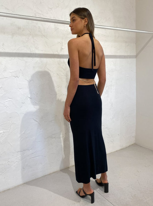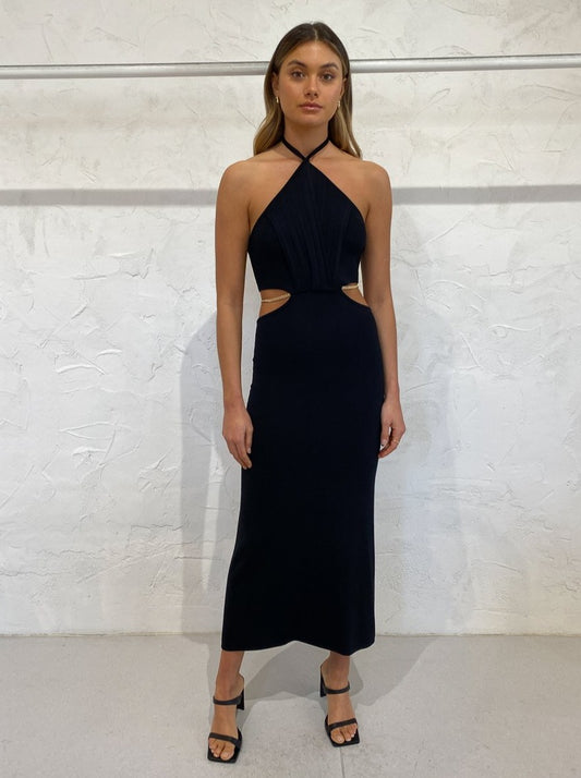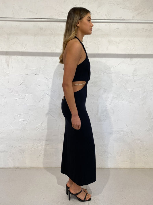 Cut from a stretch Eco-Vero Viscose blend, this effortlessly refined ankle length dress with signature waist cut outs and adjustable halter neckline skims and flatters the body in all the right ways.