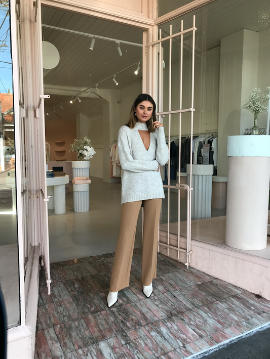 Styled here with the Instant Connection pant in Camel.