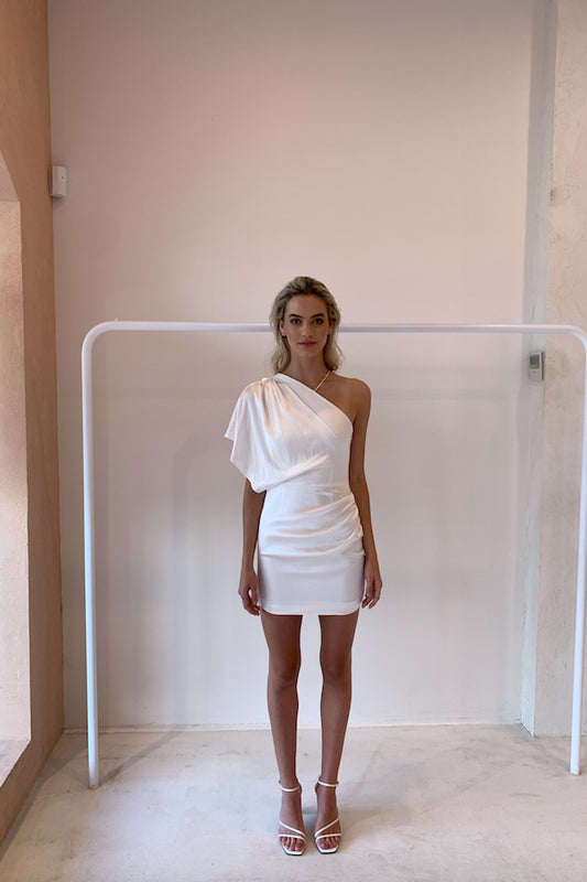 Equally sensual and contemporary, the Miami Heat Mini Dress is ready for the festive season. Crafted from a stretch viscose satin, this dress has a slim-fitted silhouette that flatters the female form. It’s cut to an asymmetrical shape that slides off one shoulder with delicate tucked detail on the other. Ruching across the waist adds a playful twist.