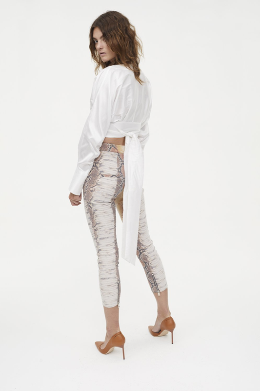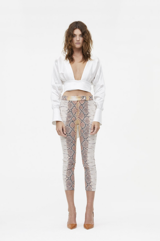 Further elevate the statement look by pairing yours with the Reptillia Skirt or Nobody Besette jean for a more casual approach.