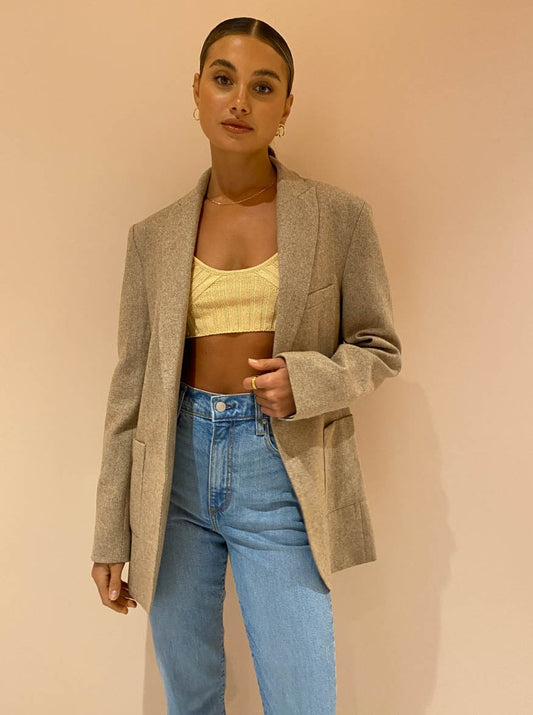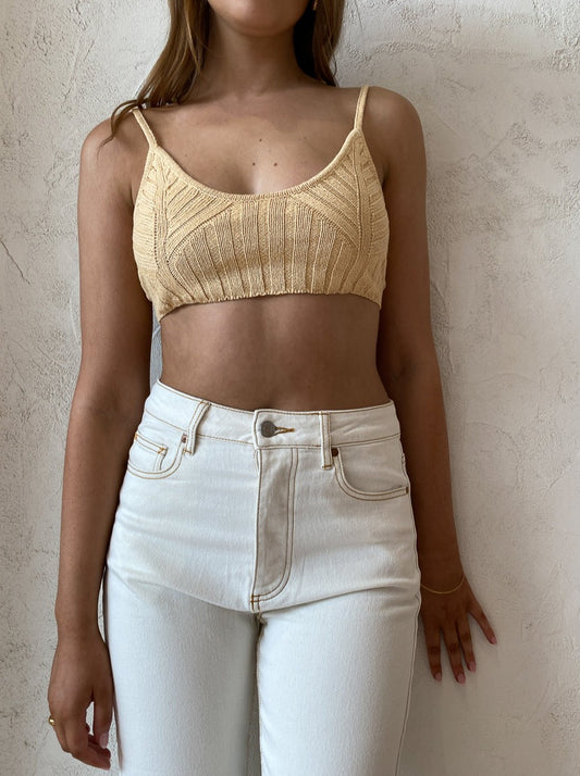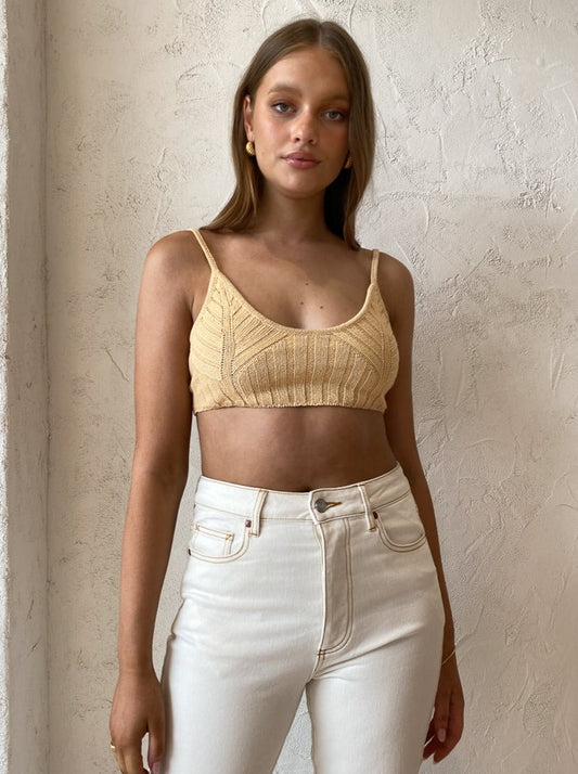 With the soft honeycombe hue and cropped length, this bralette can be styled to suit any Coco closet.