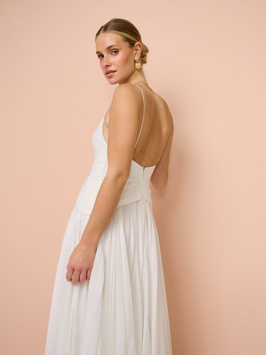 The Marley Maxi Dress in Ivory from Acler is the perfect blend of modern classic styling.