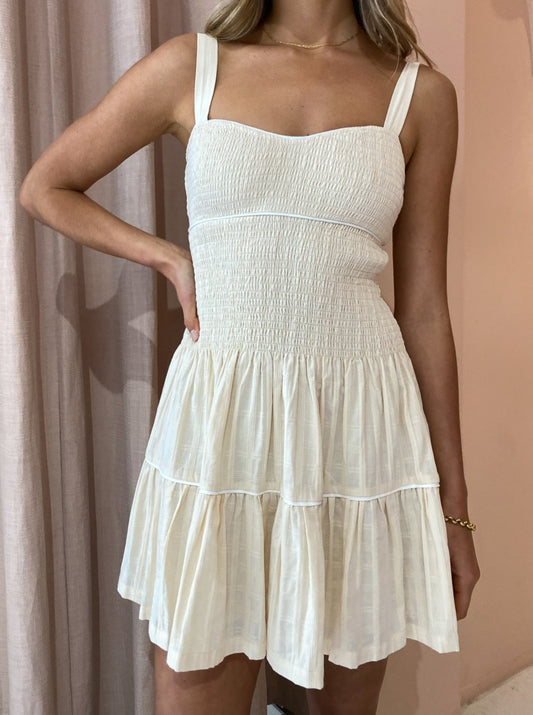 Mon Renn Sofia Strappy Mini Dress in Creme