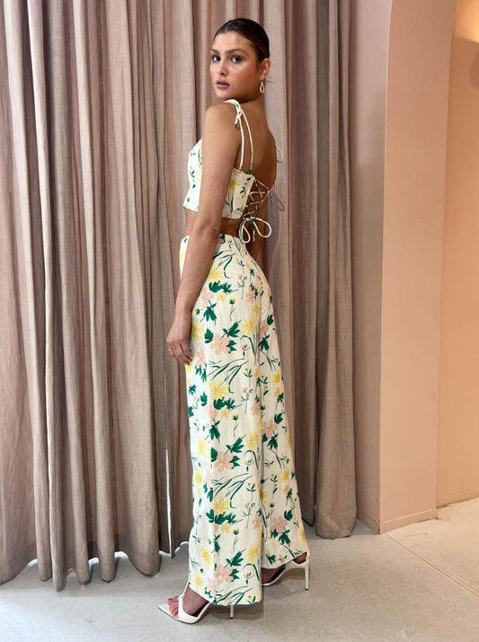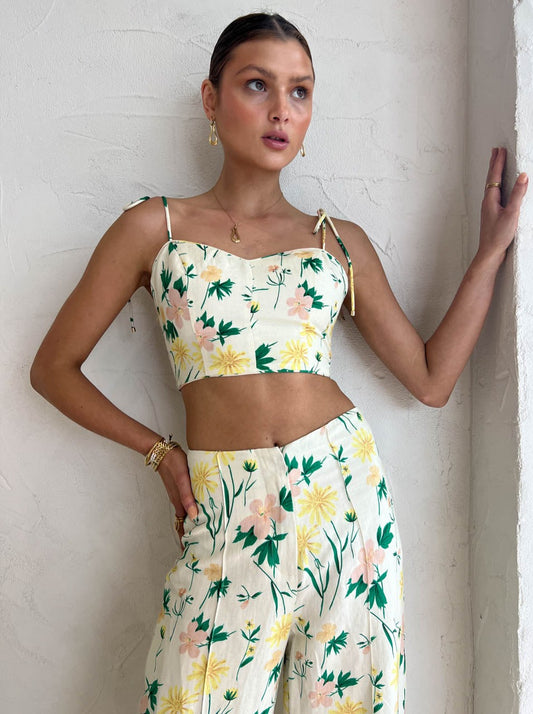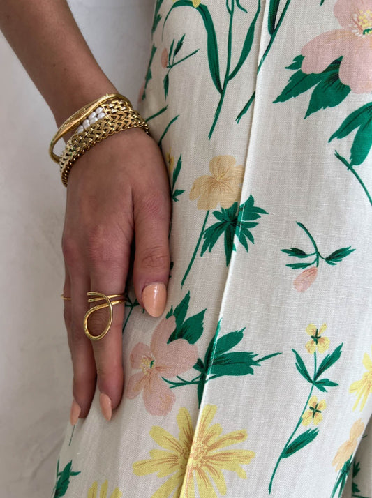 Complete the set styling with the Etherial Crop in Garden Party, and add a touch of glamour with the  Alohas Twist Strap in Camel, the Reliquia Telde Earrings and matching Telde Necklace in GoldPorter Baby Link Bracelet in Gold and Porter Pond Bangle in Gold