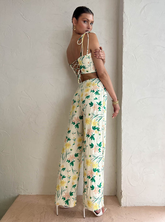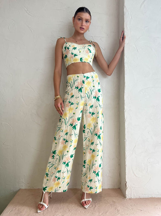 Mon Renn adds their signature feminine touch to timeless tailoring with the Etherial Floral Pant in Garden Party.