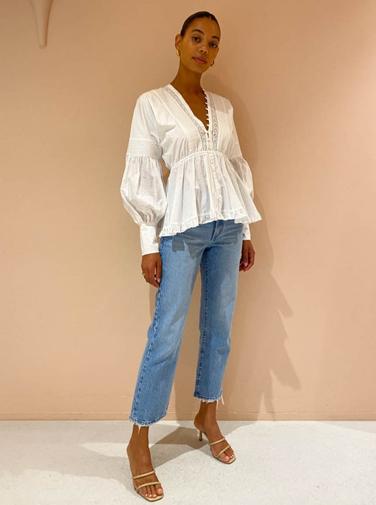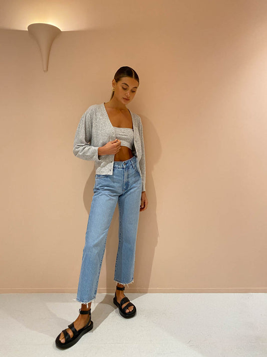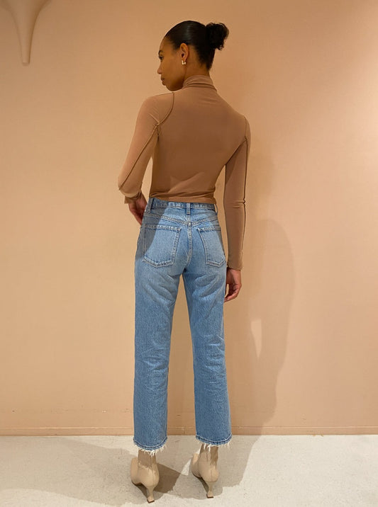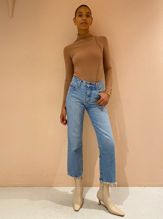 Cut from a rigid 100% Cotton denim, these high rise jeans with a timeless straight leg cut and ankle cropped length are on top of our list for trans-seasonal styling.
