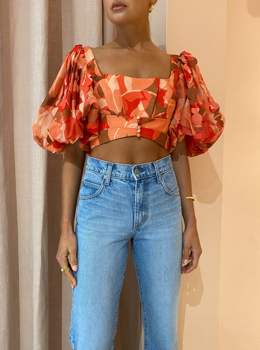 Elevate with SIR. Maev Bustier in Florence Print or wear on repeat with Anna Quan Colette Top in Silence, or the Camilla & Marc Clyde Tank in BisqueAlohas Slip On Cross Sandal in Ivory, Porter Heritage Bracelet in Gold, Porter Bubble Ring in Gold and Porter Horn Hoops in Gold.