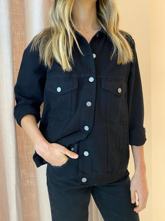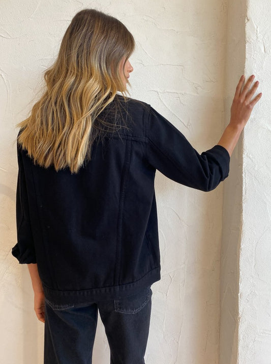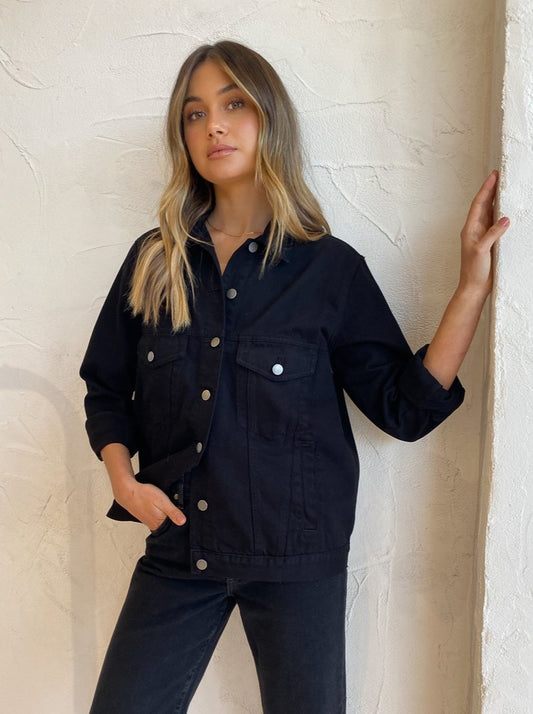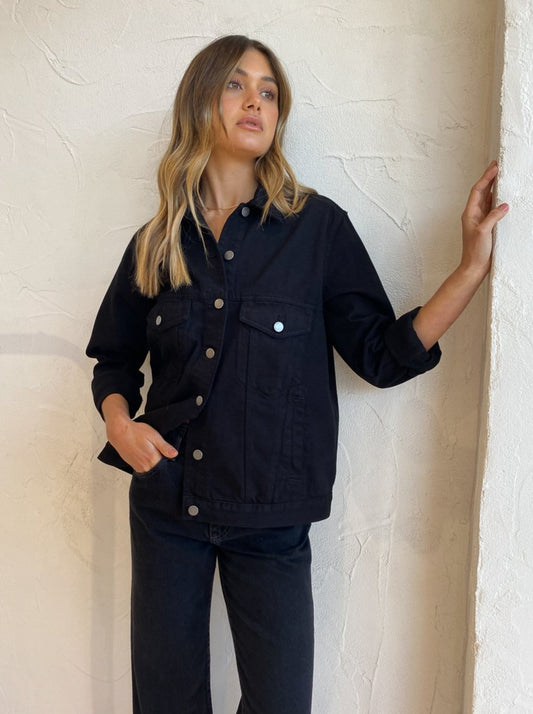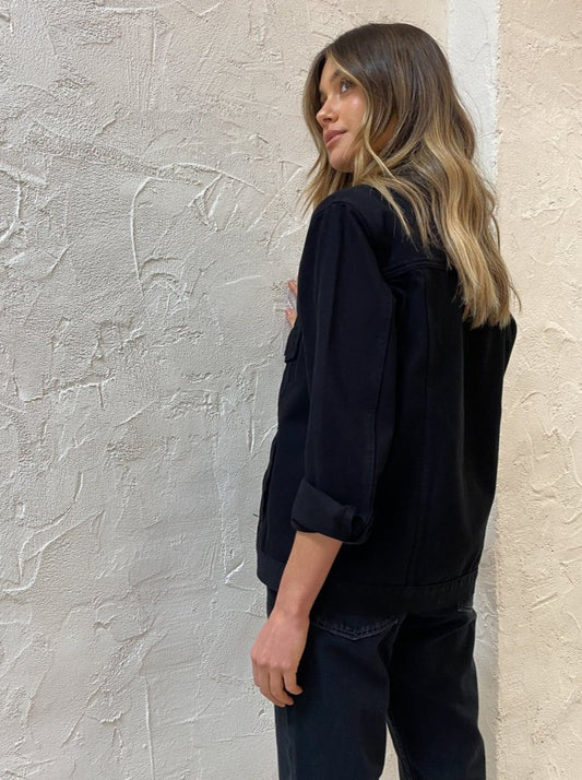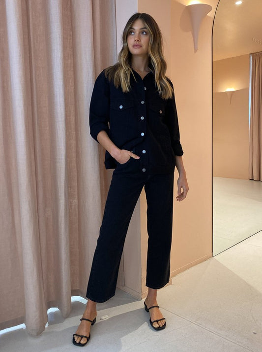 Coco Styling Tip: For elevated off-duty denim styling, match back the Lou Jacket with the Nobody Hardy Jean in Old Coal, the Camilla and Marc Atlas Ribbed Henley in White and finish with the Mara & Mine Inez Sandal in Black