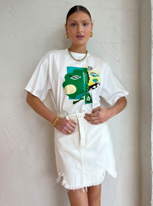 Finish the look with the Alemais Soleil Faces Tee in White, Camilla and Marc Vigo Heels in Ivory, Alias Mae Poe Slide in Tan, Porter Chunky Belcher Necklace 2.0 in gold, Reliquia Trending Upwards Hoops in Gold, Porter Heirloom Bangle 6mm in Gold, Porter Wave Ring Set in Gold, Porter Pond Bangle in Gold and the Porter Harp Ring in Gold