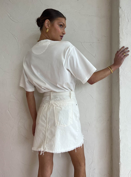 Elevate your contemporary wardrobe edit with the Piper Skirt in Chalk by Nobody Denim.