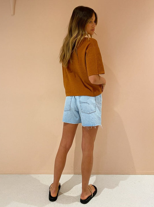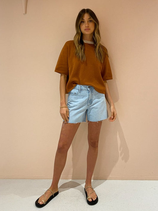Coco Styling Tip: Complete the look with the Bec & Bridge Dusty Palm Knit Tee in Rust, the Alias Mae Soji Sandal in Natural, Porter Chunky Belcher Bracelet in Gold and Released From Love Classic Studs 001 in Gold for signature Coco laid-back luxe styling.