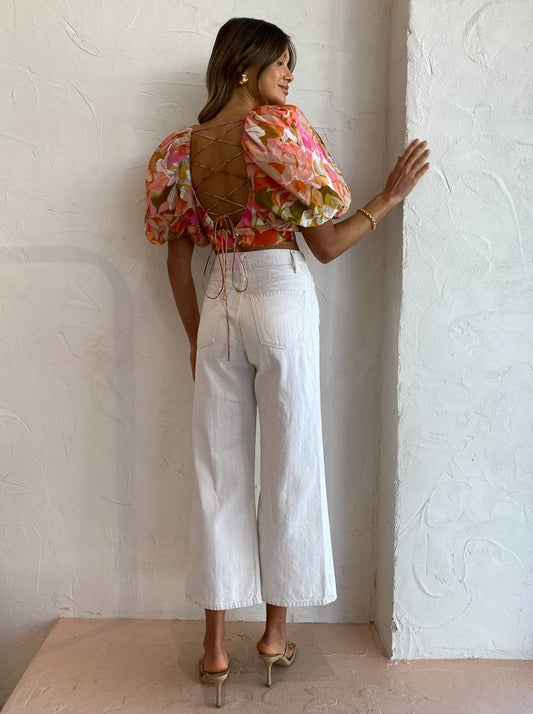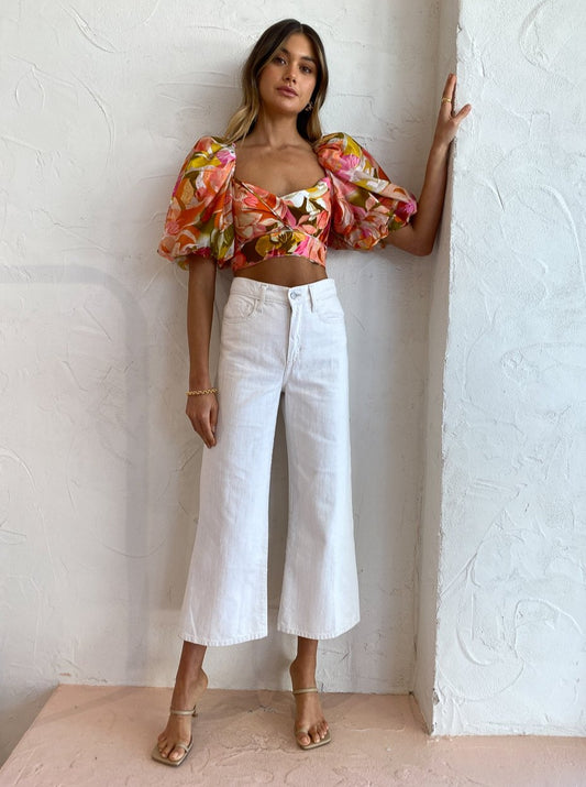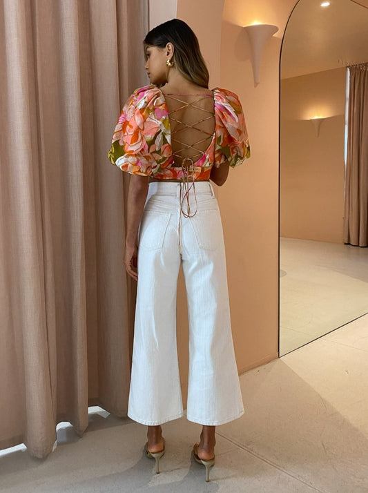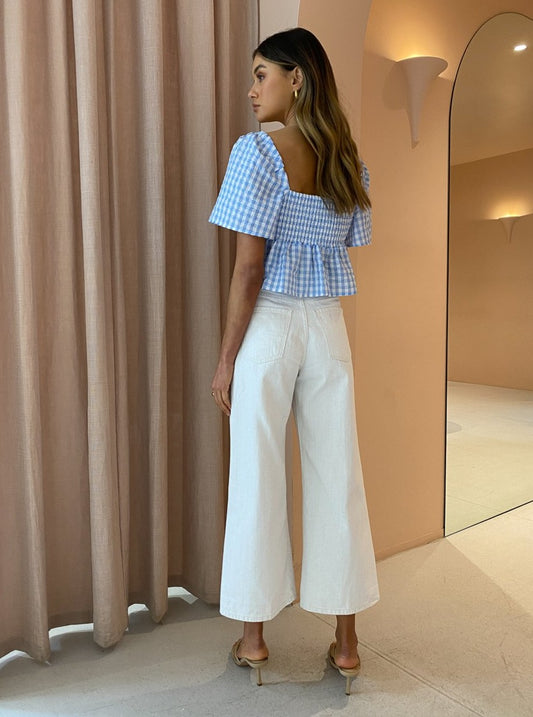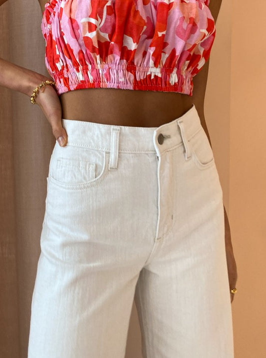 Crafted from a ridged Australian Cotton denim in a neutral Natural Linen hue, they're designed to fit and flatter sitting super-high rise and falling into a comfortable ankle crop wide leg cut.