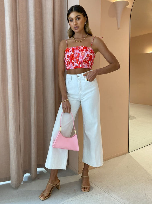 Coco Styling Tip: For your next special Coco date style with Steele Layla Crop in Camellia, The Wolf Gang Lola Mini Shoulder Bag in Candy and Alias Mae Nelle Heel in Natural.