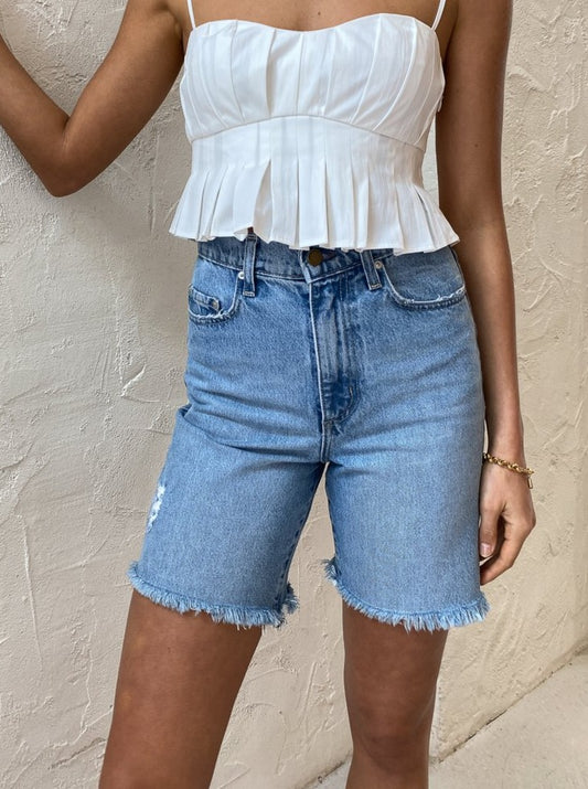 A longer length denim with a relaxed leg and sitting high on the hips, these mid authentic Indigo wash shorts are the perfect everyday style for those off-duty days.