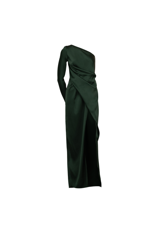 Reinvigorate your Autumn evening-wear repertoire with the Diana Gown in Jungle by One Fell Swoop.