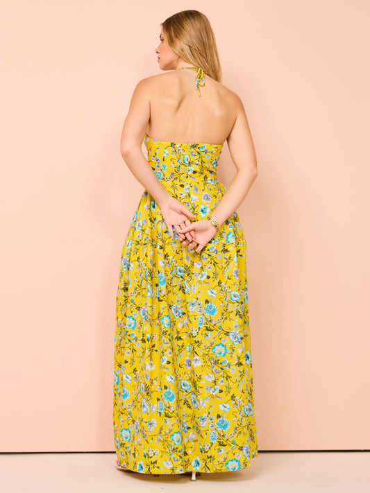This slim-fitting bustier dress captures the eye with its exclusive Positano print and semi-sweetheart neckline, while the corset-style bodice and adjustable roulette ties ensure a perfect fit.