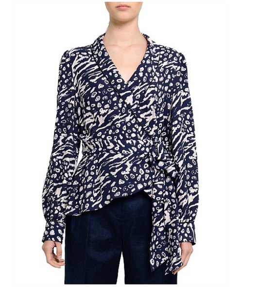 Rebecca Vallance Lola Wrap Top in Navy Print