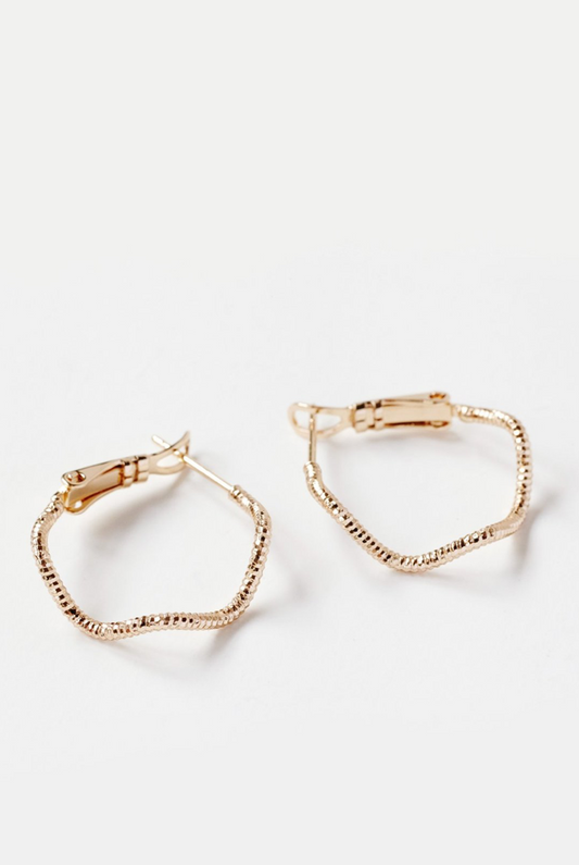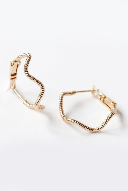 The Reliquia 'Fine Swirl Earrings' in Gold are a unique swirl designed hoop with intricate line embellishment.
