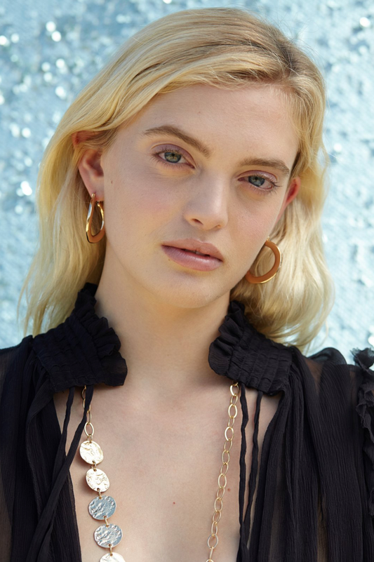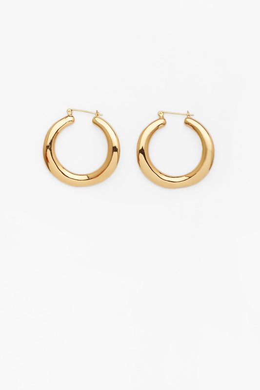 The Reliquia 'Vera hoops' are a classic hoop that plays with form. This perennial style is updated in the Vera with tapered edges, slight curves, and an aesthetic unevenness.