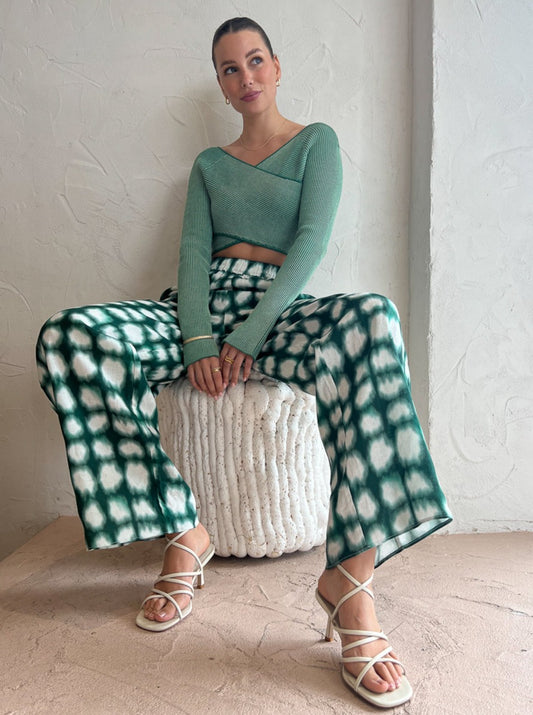 Welcome breezy sophistication with the ROAME Ascend Pants in Emerald Shibori Print.