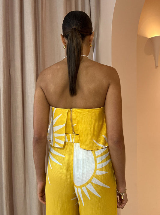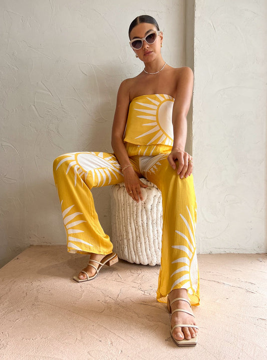 Complete the set with the Elma Bustier in Roame Sol Print, By Charlotte Align Your Soul Ring in Gold, James Smith Medena Sandal in Nude, By Charlotte Eye of Purity Pearl Choker in Gold Vermeil, Porter Tear Drop Earrings in Gold, Brie Leon Mini Balance Sleeper in Gold and the Porter Chunky Belcher Bracelet in Gold.